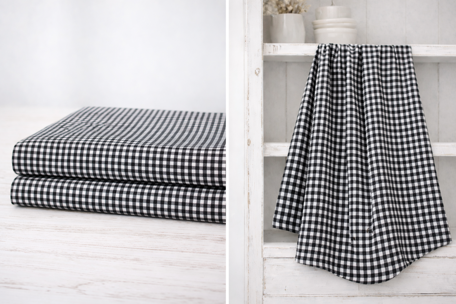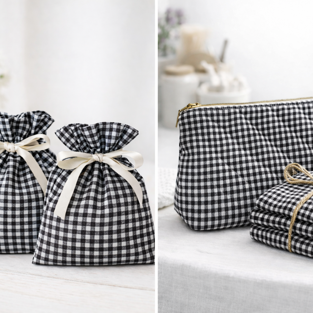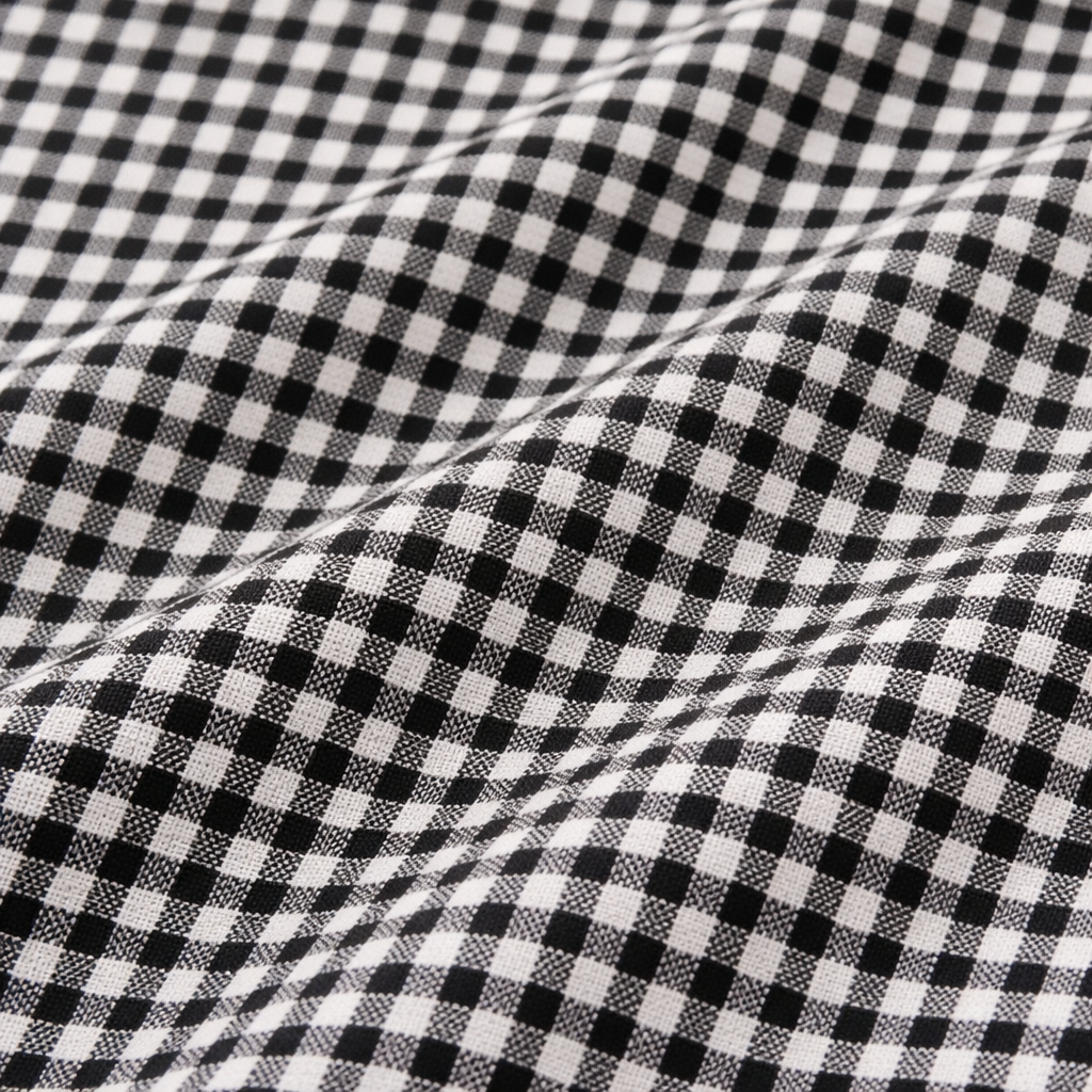 Elegimos este vichy por su equilibrio entre suavidad y estructura, lo que facilita la confección y garantiza un acabado limpio y duradero.